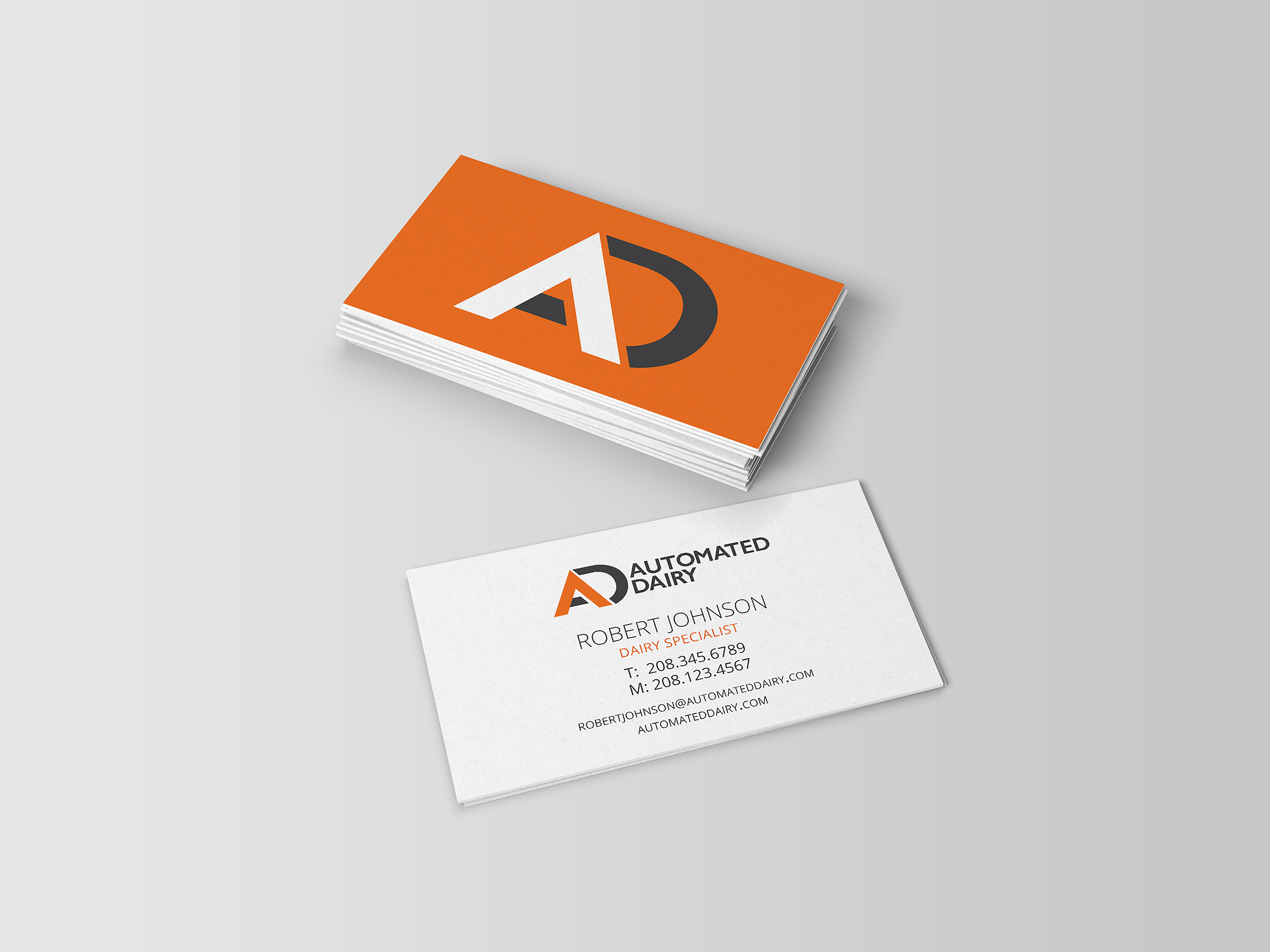 Branding for Automated Dairy. A company that services and equips mainly commercial dairy barns. Branding includes Logo, Icon, letterhead, business cards, and full brand guide.